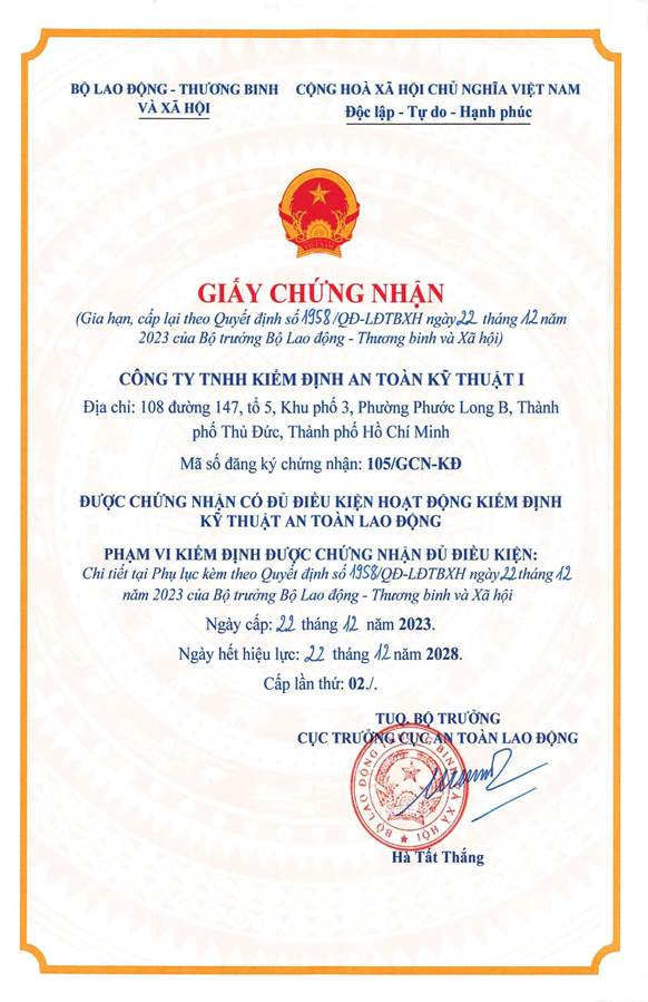 CÔNG TY TRÁCH NHIỆM HỮU HẠN KIỂM ĐỊNH AN TOÀN KỸ THUẬT I